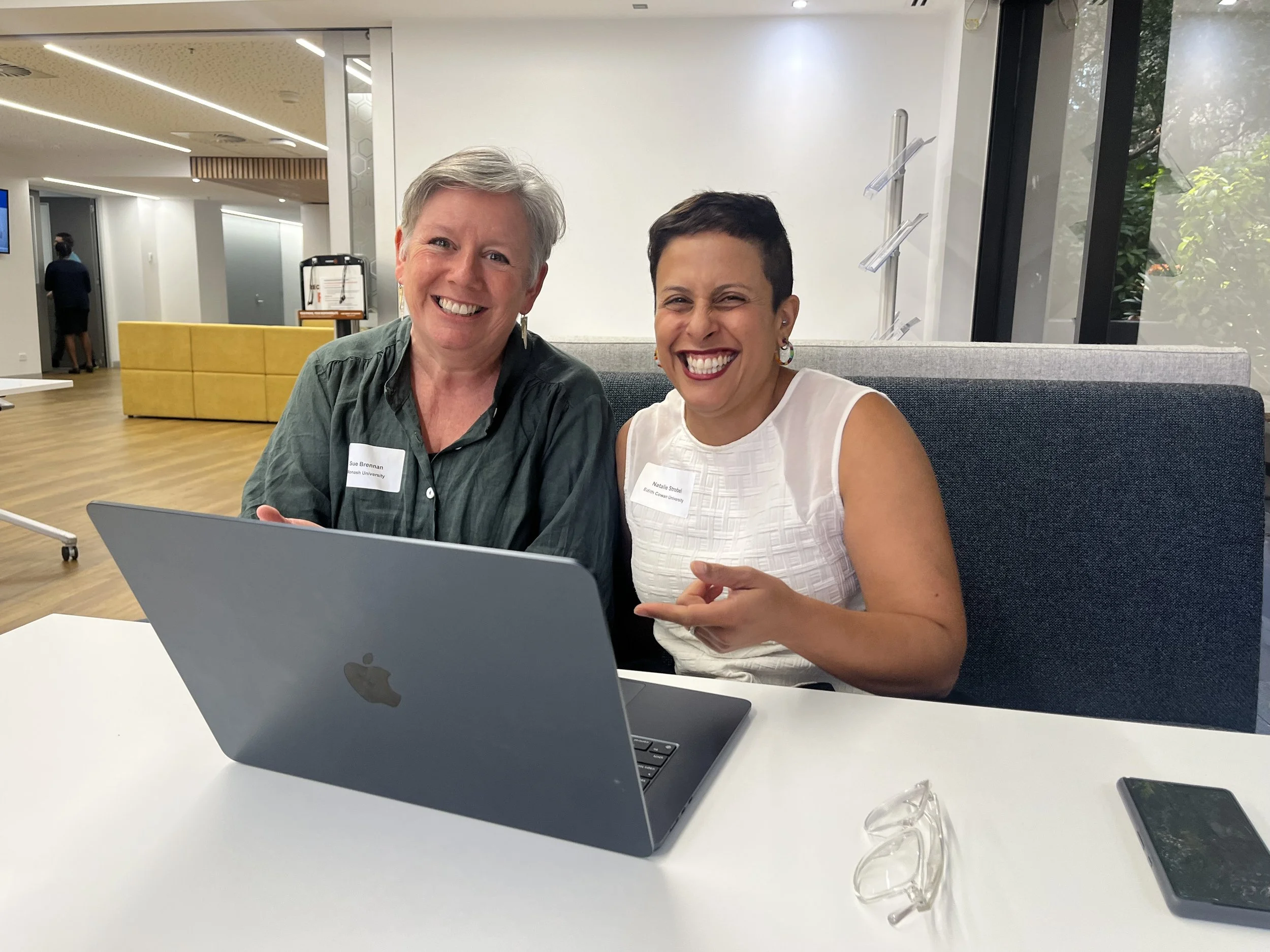 Melbourne GRADE Centre Director Dr Sue Brennan prepares for a symposium talk on recent advances in GRADE at the Monash School of Public Health and Preventive Medicine with Dr Natalie Strobel.
