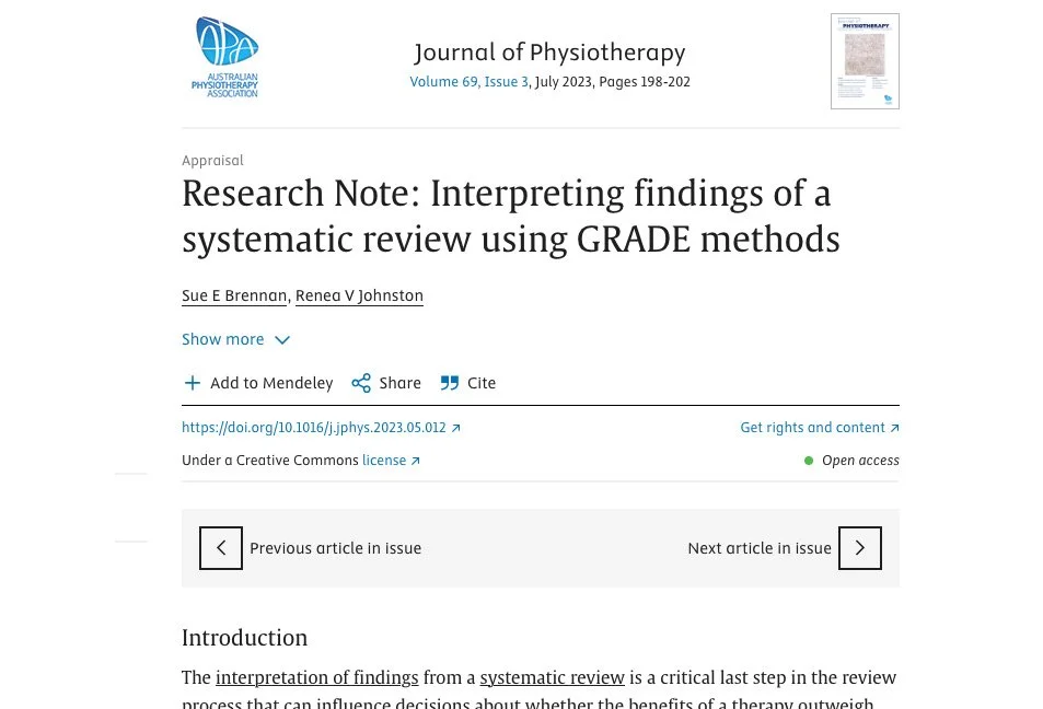 From its inception, the Melbourne GRADE Centre has worked closely with the NHMRC to support the use of GRADE through provision of training, methods guidance and advice, and methodological review of guidelines and NHMRC-commissioned systematic reviews.